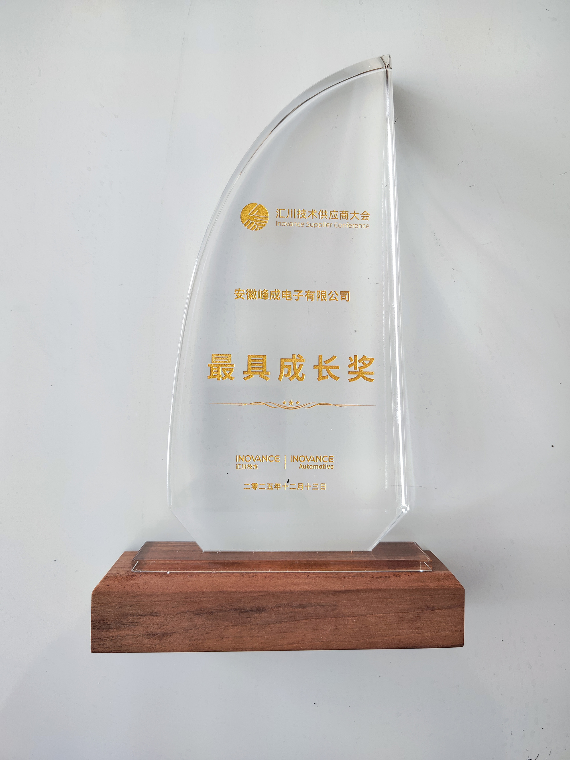 峰成公司榮獲匯川技術(shù)供應(yīng)商“最具成長(zhǎng)獎(jiǎng)”